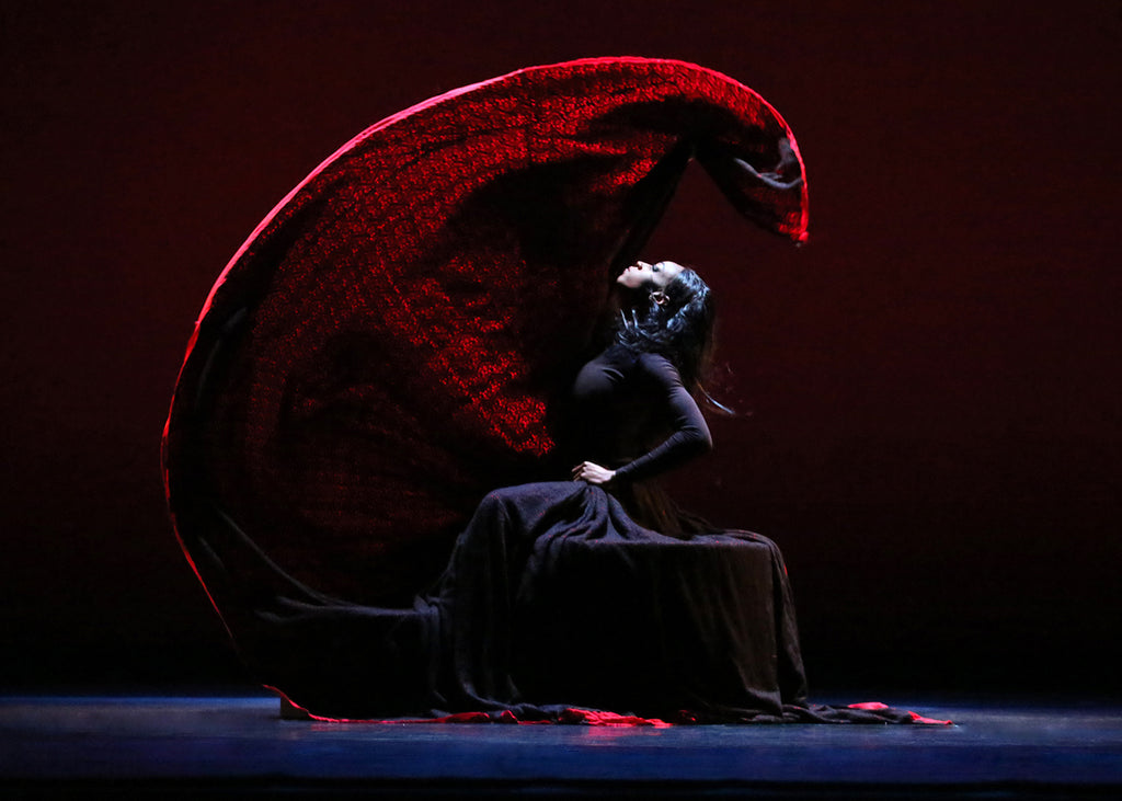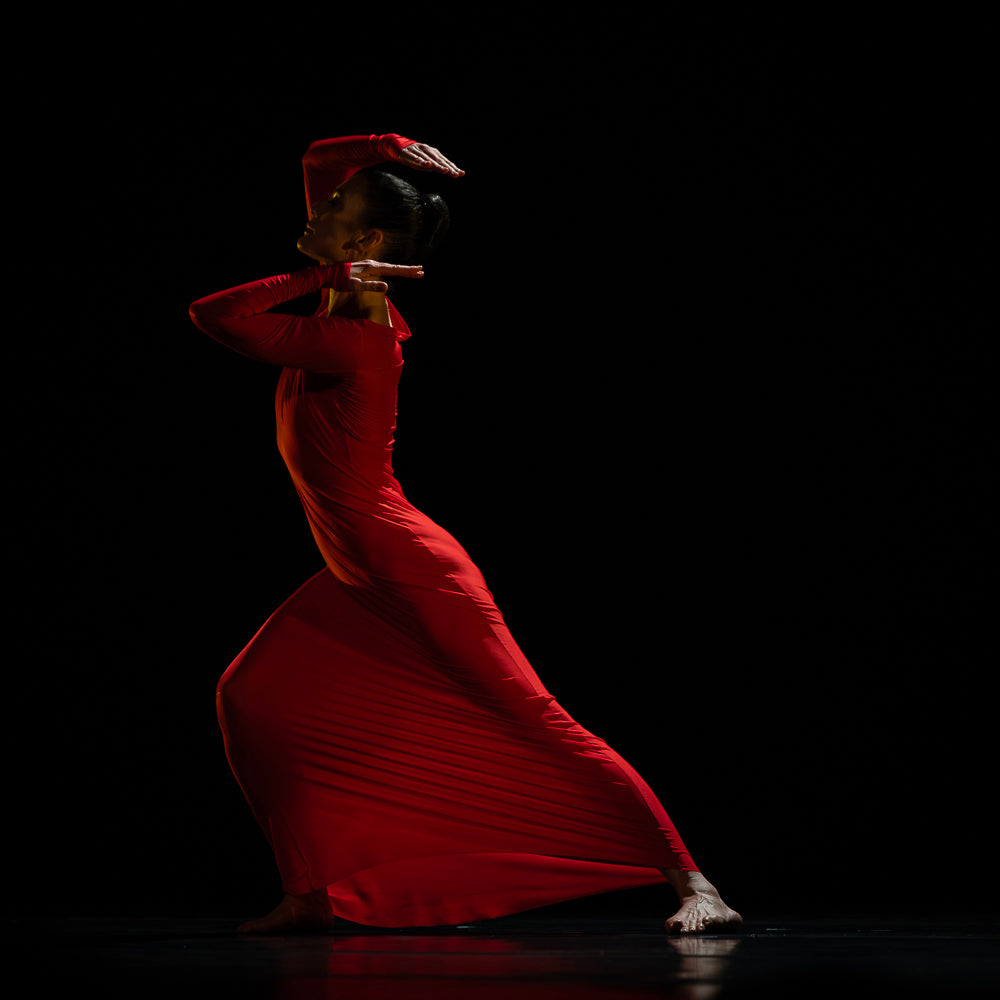Rightly featured on both evenings, the brand-new creation “Désir” (2025)—conceived by Virginie Mécène, extraordinary dancer and ballet master of the Graham technique—is a true gem. Mécène created it for Aurélie Dupont, former étoile of the Paris Opéra Ballet, who here expresses her passion and lifelong fascination for Martha Graham’s universe and technique. Inspired by a 1926 photograph of Graham performing a solo of the same name, now lost, Mécène has recreated the piece with passion and refinement, set to a hammering, minimalist piano score. Dupont brings it to life with her natural elegance and glamour. The piece begins and ends with Dupont raising her interlaced wrists toward the sky in an act of prayer—and indeed Mécène describes it as a hymn to femininity and desire. While the red stretch costume and the music recall Lamentation, the choreography speaks with its own voice: mature, inventive, faithful to Graham’s spirit yet full of freshness. In her red elastic dress, Dupont sculpts the air with horizontal arm movements—a kind of fractured, edgy third arabesque, forearms and hands directed backwards, elbows bent. A single top light isolates her, tightening the space around her. It is a beautiful cameo, one that the French public greets with particular warmth, as Dupont is widely regarded as a living monument of French dance.