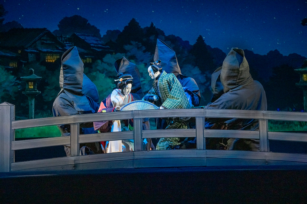 He is the love of your life. You are his one-and-only. The pair of you is doomed: Obligations to the social order make your relationship impossible. The only way out—double suicide. Actually, this being eighteenth-century Japan, you let him literally do it all; still, you are his forever and there is no turning back. How gorgeous the world seems here in the quiet forest, on this bridge among the flowering trees, the robin’s-egg blue sky above. How handsome he is as he brings himself to standing; you sink into your kimono at his manly wonderfulness. He looks at you and speaks of his memories of making love, of the softness of your skin. But the hour is late; the bells toll.