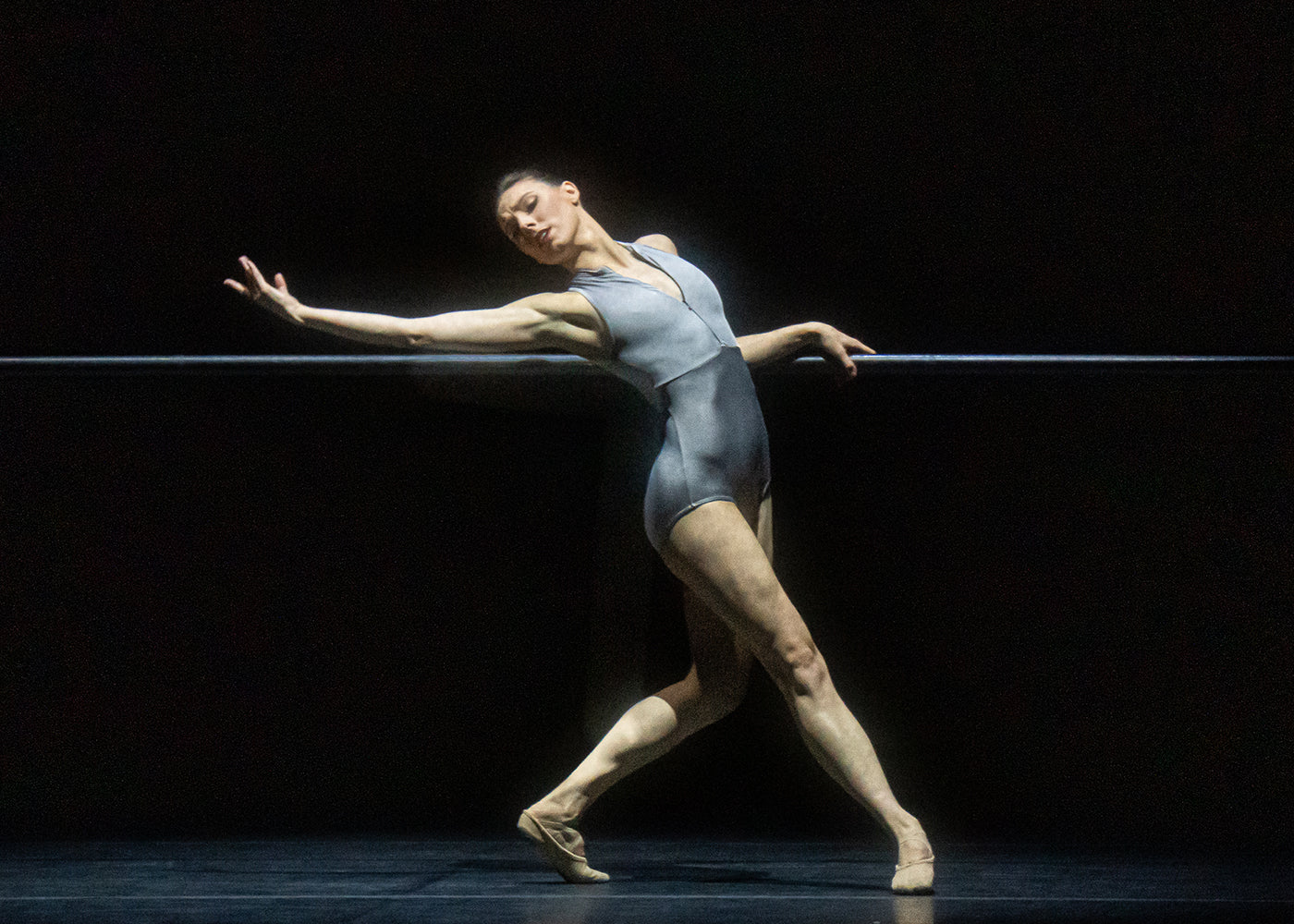 It’s hard to see a ballet barre on stage and not think about Harald Lander’s 1948 “Études” and the way it translates barre work into a production through staggered sequencing, repetition, and theatrical lighting. There is a novelty in it—of seeing something that is typically reserved for class on the stage. “The Barre Project,” by contrast, abandons any such pretense. This is wholly performance. The dancers luxuriate in it.