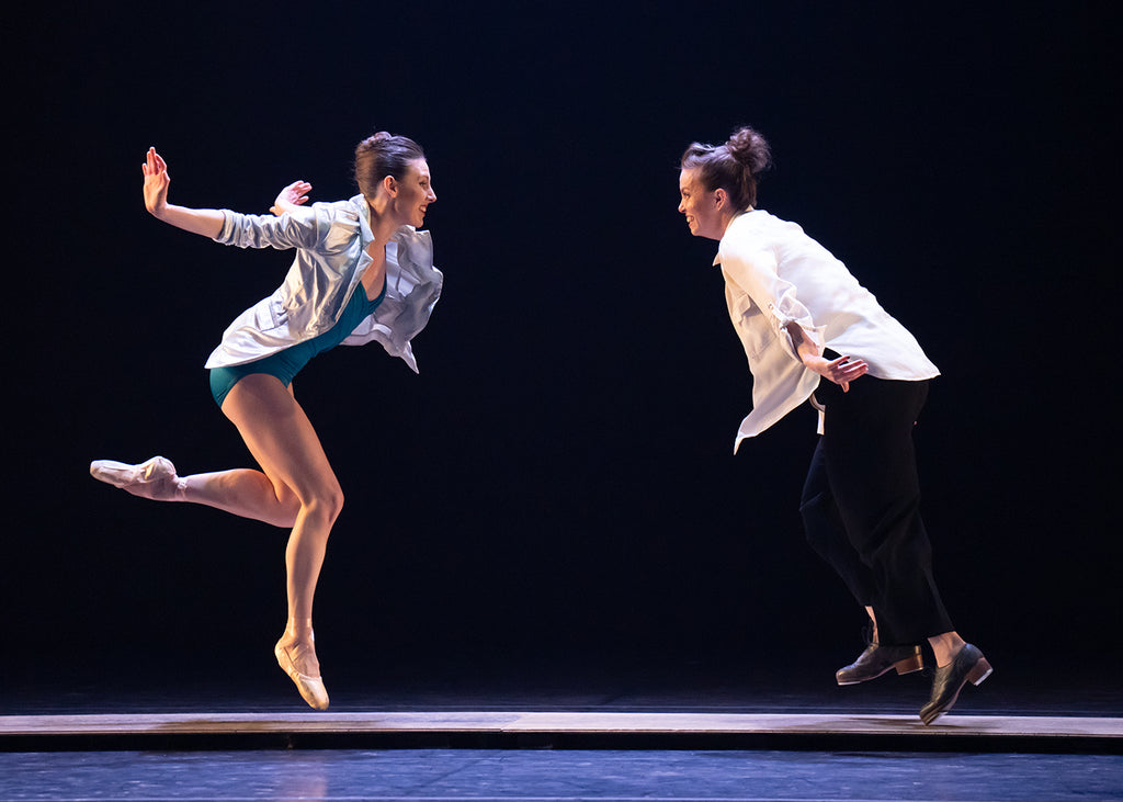 Tiler Peck and Michelle Dorrance in “Time Spell” by Dorrance, Jillian Meyers, and Peck. Photograph by Steven Pisano