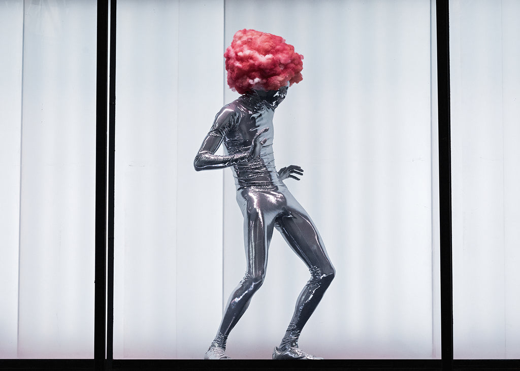 With a full ensemble, it's hard to tell who is who, as faces and bodies remain obscured. Brightly coloured wigs are donned and plants are brought onto the floor, the natural and artificial together. Symbols of ’50s Americana follow: hot dogs are eaten, baseball caps worn and bowling balls hurled. The dancers are no longer regimented, not mere automatons. In going against the tread of the travelator, we go against the natural order of things, refusing to be passive consumers, or conveyor belt commodities. It seems that Requardt and Rosenberg are warning us that we are living lives hermetically sealed, starting to become alien to one another, and that if we can no longer look up from our screens and face each other, we will no longer be able to communicate. Okay, it's not the most groundbreaking idea, but it's beautifully rendered.