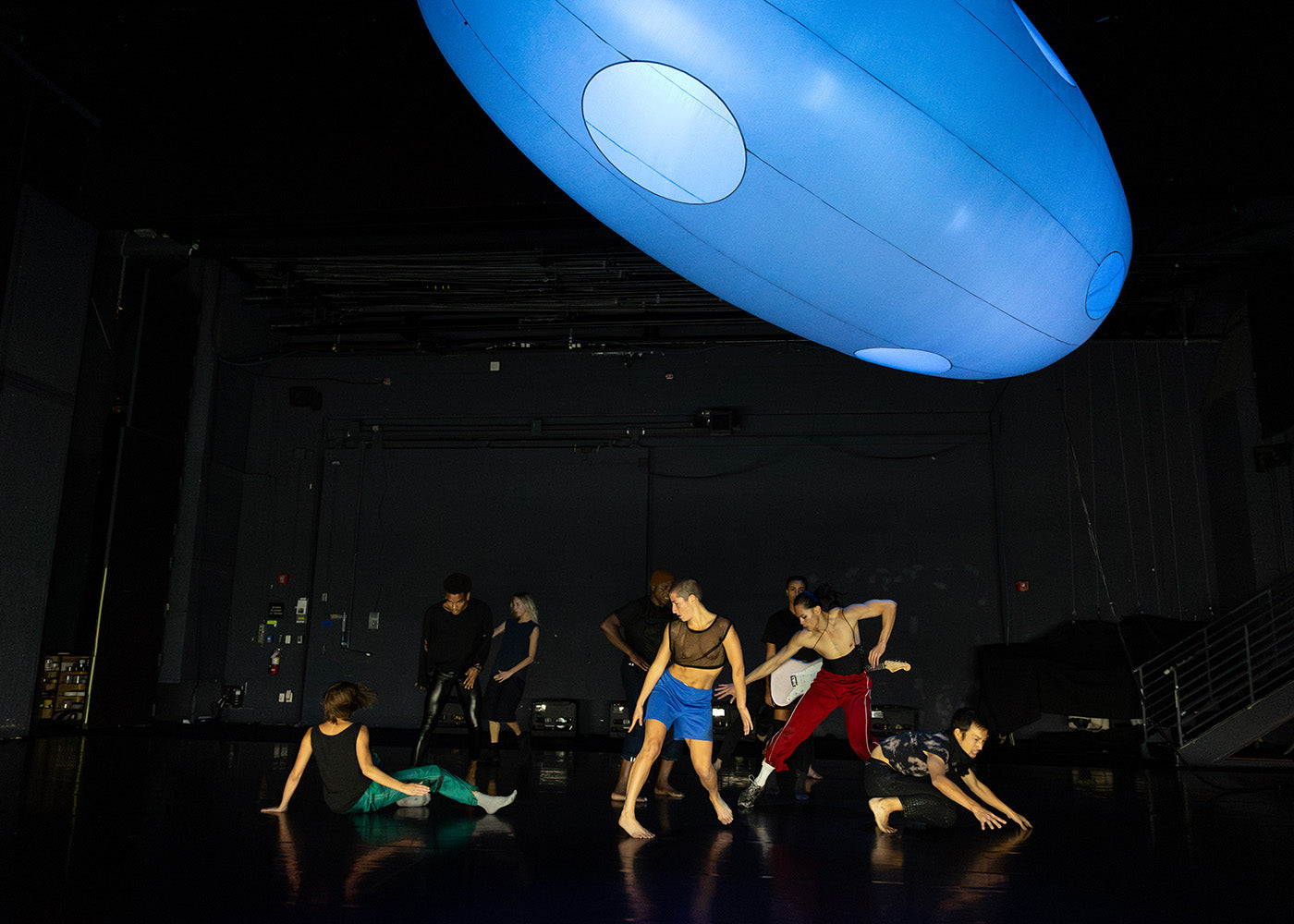 WTF! And this reviewer means that in a good way. No, make that a great way! Whatever it was—and is—“takemehome,” the 65-minute work choreographed by Paris, France-based Dimitri Chamblas, was, by turns, provocative, enigmatic, stunning, stirring, singular and, well, something else again. Chamblas, who recently stepped down as dean of the dance department at California Institute of the Arts (CalArts), together with musician Kim Gordon (she of Sonic Youth fame), crafted a piece for nine Studio Chamblas dancers, an inflatable zeppelin—which changed colors, including to cherry red—five electric guitars and five amplifiers that proved as mysterious as it was brilliant.