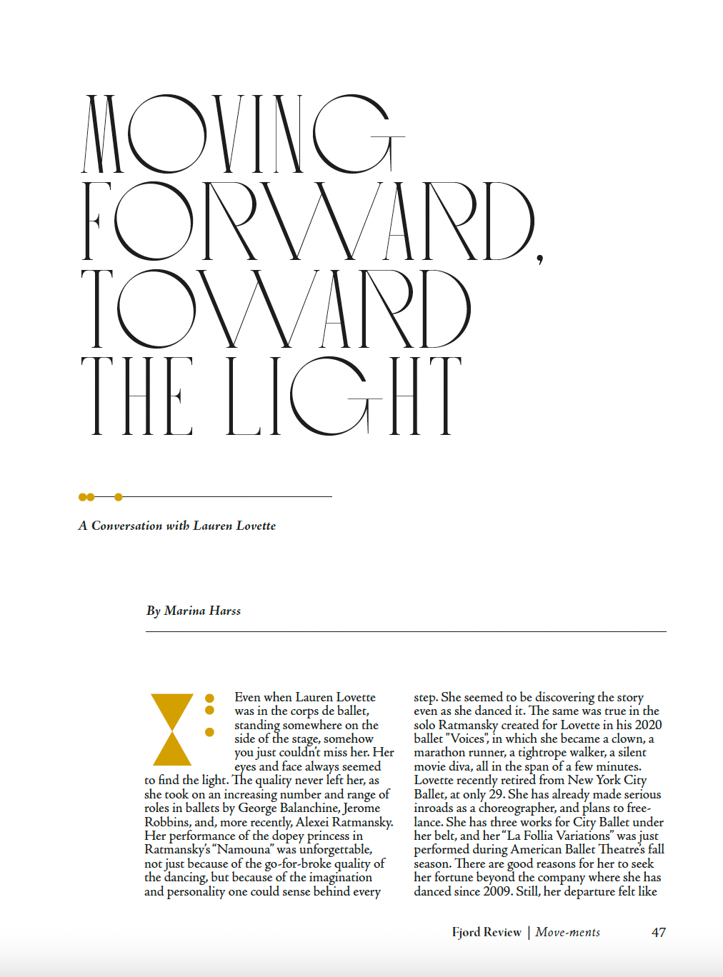 Exclusive interviews with dancer-actor Brennan Clost (Tiny Pretty Things), former New York City Ballet principal and choreographer Lauren Lovette, and rising star Diego Tortelli