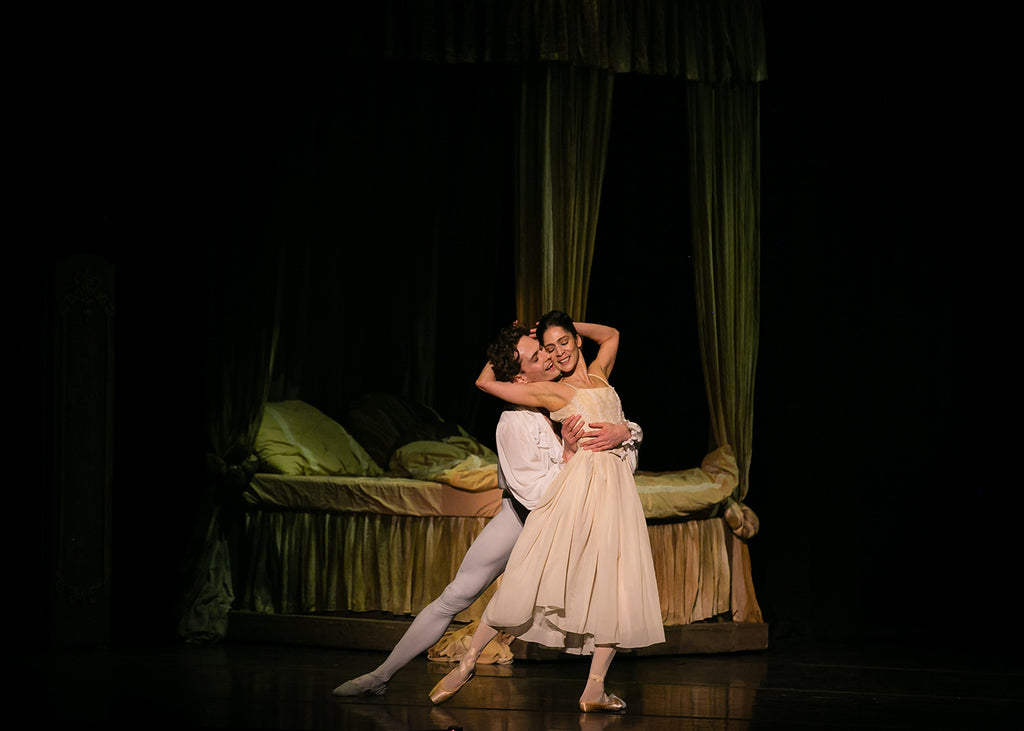 But of course, as we all know, one cannot remain suspended in this state. The world will crash in. Society upholds certain rules and it is respondent to power, no matter the pull of true love. If this staging of “Manon” is about how far would you go for the one you love, it is set against a backdrop of the plight of women, and Manon’s own fear of what being poor entails and the shame that accompanies such poverty. And so, the world Hendricks and Linnane inhabit, even in the bedroom, is one of rags, beautiful, artful rags, in sets designed by Peter Farmer. In the splendour of the Regent Theatre, and from my vantage in the dress circle, the set, with all its players, looked like an exquisite storybook jewel I would like to fold up and store in my pocket. Appearing perfectly at home in this environment, with the lighting design of Jacopo Pantani, relit by Jason Morphett, rags and beggars are woven through every part of the fabric of “Manon,” an ever-present reminder of the reality Hendricks’s Manon operates within. Hendricks reveals the curtailed power Manon has through the almost unreachable quality she imbues during a scene in Madame X’s hôtel particulier in which she all but skips over the heads of the men who would have her. Placing the emphasis upon Hendricks’s control of her body, she is not passively passed from man to man like a commodity, she is active, aloft, elsewhere. She is finding what power she can in a scenario that is ultimately impossible for her to steer.