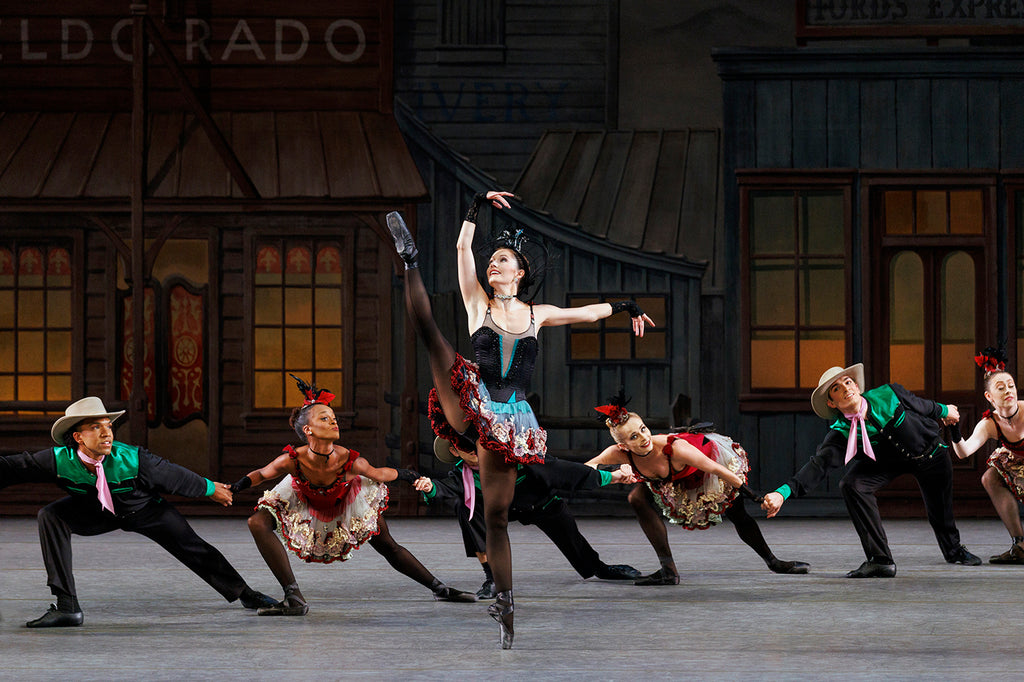 After a week of the well-balanced meal that is “Jewels”—the nutritive, potentially tedious, leafy greens of “Emeralds,” the gamy, carnivorous “Rubies,” and the decadent, shiny white mountains of meringue in “Diamonds”—the New York City Ballet continued its 75th Anniversary All-Balanchine Fall Season with rather more dyspeptic fare. Week two kicked off with the triple hot wing challenge of “Western Symphony,” “Tarantella,” and “Stars and Stripes.” The murky, brief “Unanswered Question” section from “Ivesiana” was tossed in like a Tums tablet. I can’t say the program wasn’t fun, but it was a lot to digest. Real (tambourines), fake (a plastic trumpet), and imaginary (harmonicas, banjos, fiddles) instruments were played. There were three variations on coda fouettés, two dance-off trick competitions, and two calf-busting relevé diagonals. Two finales featured principals resting against the front wings in funny hats. Yes, two.