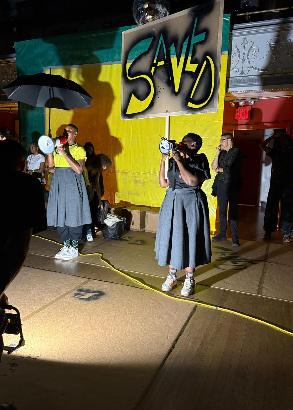 I walk into Roulette, a rough-around-the-edges world music venue, a couple of blocks from the Brooklyn Academy of Music (BAM). I am attending “Dambudzo,” presented as part of BAM’s Next Wave Festival, brought to the neighborhood by the bold imagination and creative enterprise of Zimbabwe performing artist Nora Chipaumire. I know this will be a different kind of performance—there are no seats. The music hall, stripped bare of all furnishings except for a few blue plastic tarps strung up overhead and a suspended revolving strobe ball, is transformed into a shabini—a makeshift speakeasy in Southern Africa—where music, bodies, and revolutionary ideas collide. We are invited into the space as participants in a conjuring of Chipaumire’s experience of her home country, Zimbabwe, with its political complexity involving the struggle for independence followed by the struggle for a just self-rule with integrity.