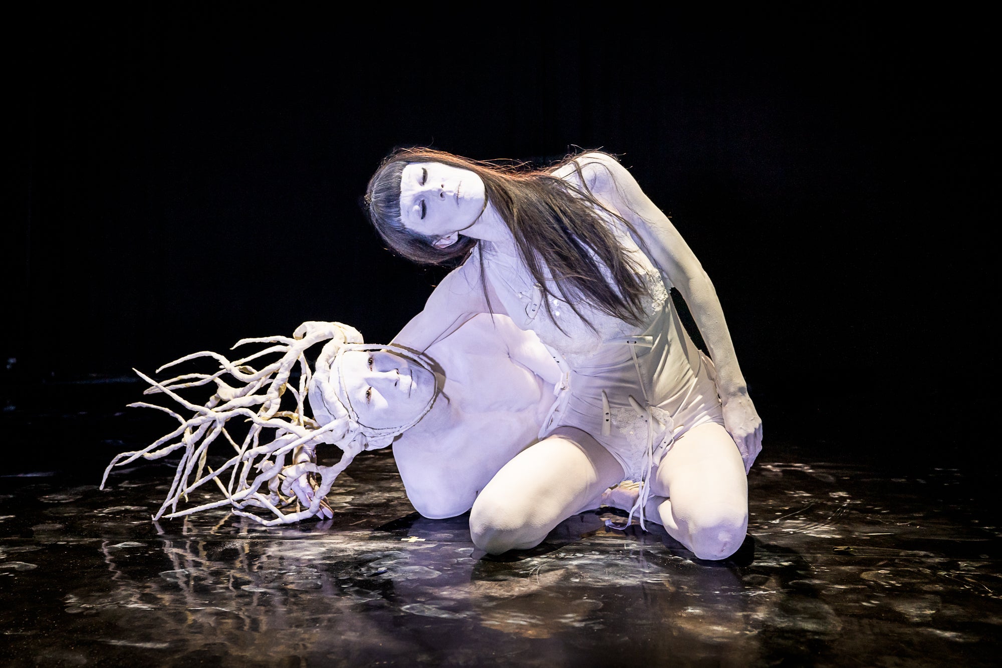 On a mid-summer evening, along the banks of the Hudson River in Lower Manhattan, a colorful band of performers costumed in orange and blue merged with the sunset and the water. Akihito Ichihara, principal dancer with the Butoh dance company Sankai Juku and founder of Elf, performed with a group of students who had just completed a workshop with him. The performance event and workshop were presented by Vangeline Theater/New York Butoh Institute. Among the performers was Vangeline, a New York City-based veteran teacher, dancer, and choreographer specializing in Japanese Butoh. She is the artistic director of the Vangeline Theater/New York Butoh Institute, a dance company dedicated to advancing Butoh in the 21st century, with a particular emphasis on education, social justice, and scientific research.