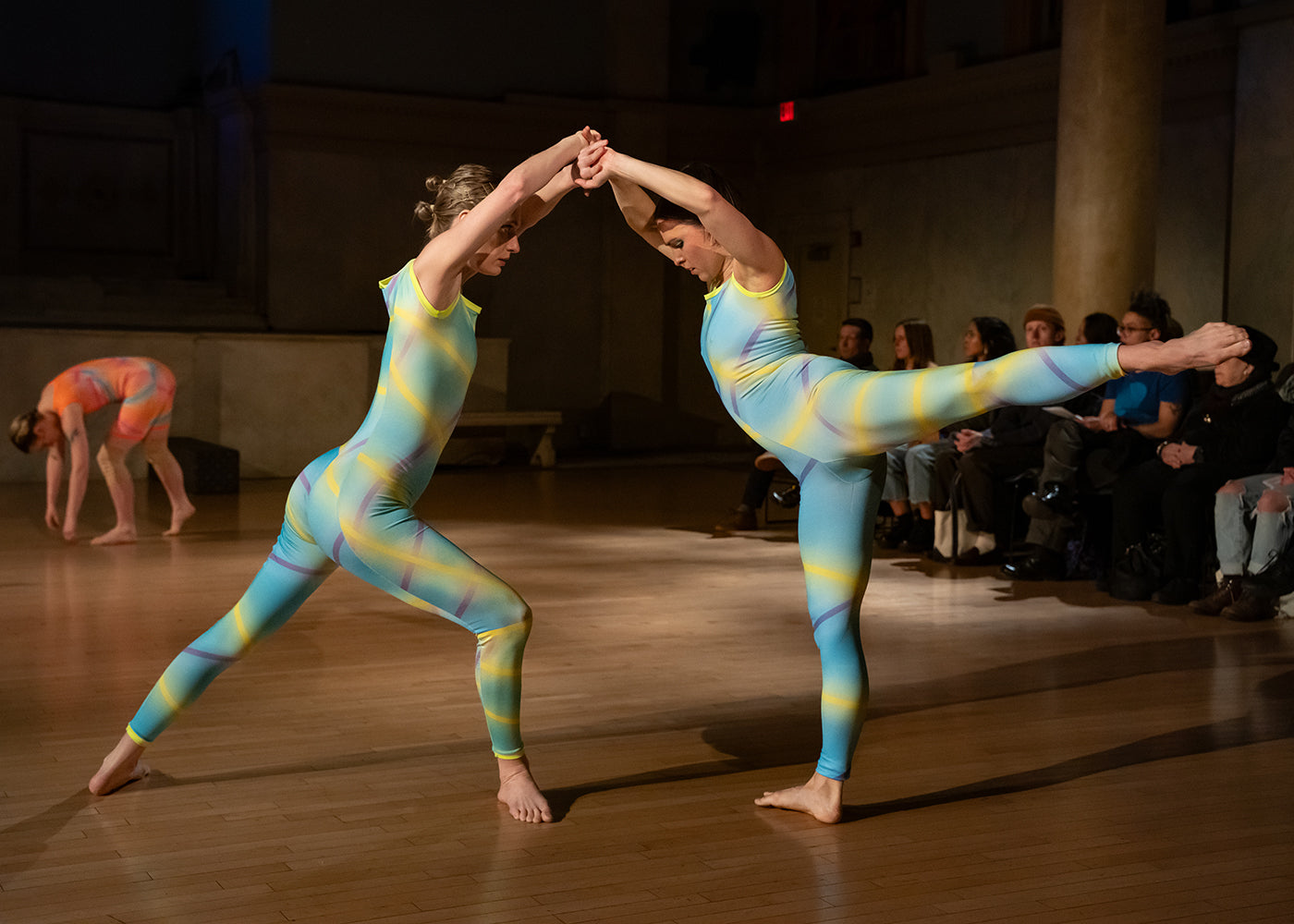 As Ponomarenko's dancers exited, Dominica Greene sprinted onstage backwards. Greene's mouth remained closed, but her voice welcomed the audience through a pre-recorded audio, introducing her piece, “Openings,” as an ongoing experiment that encourages audiences “to soften into empathy.”