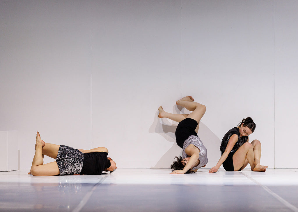 Three dancers drip down a wall like paint. Their backs press against the background as they slowly bend their knees, oozing down a blank canvas. This is a scene from John Jasperse's latest work, “Tides,” which had its premiere as part of the La MaMa Moves! Dance Festival April 10-13.
